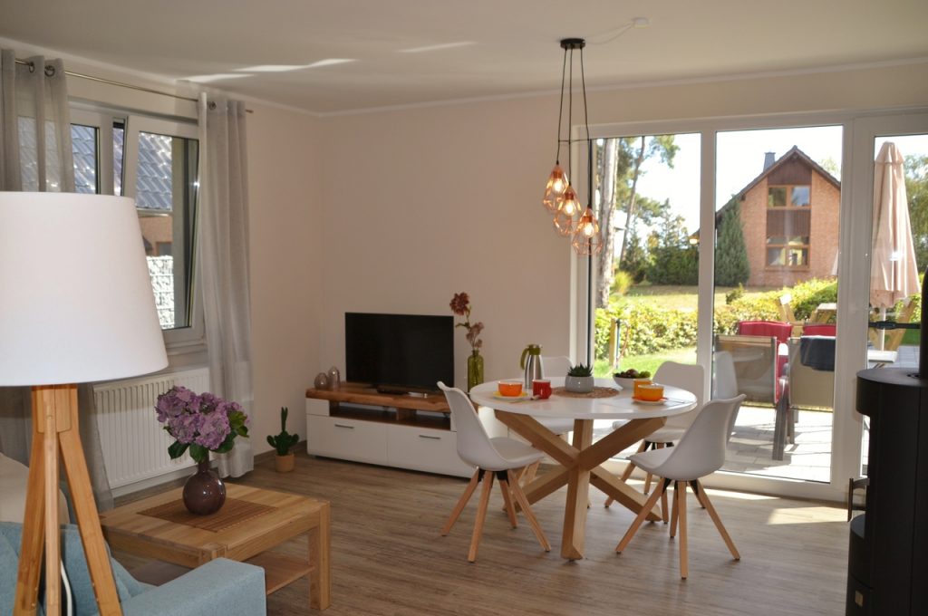 Auf 55 m² hat eine Familie mit 2 Kindern genug Platz für einen schönen Aufenthalt an der Müritz. Für die Eltern gibt es ein gemütliches Doppelbettzimmer, die Geschwister können sich in einem
